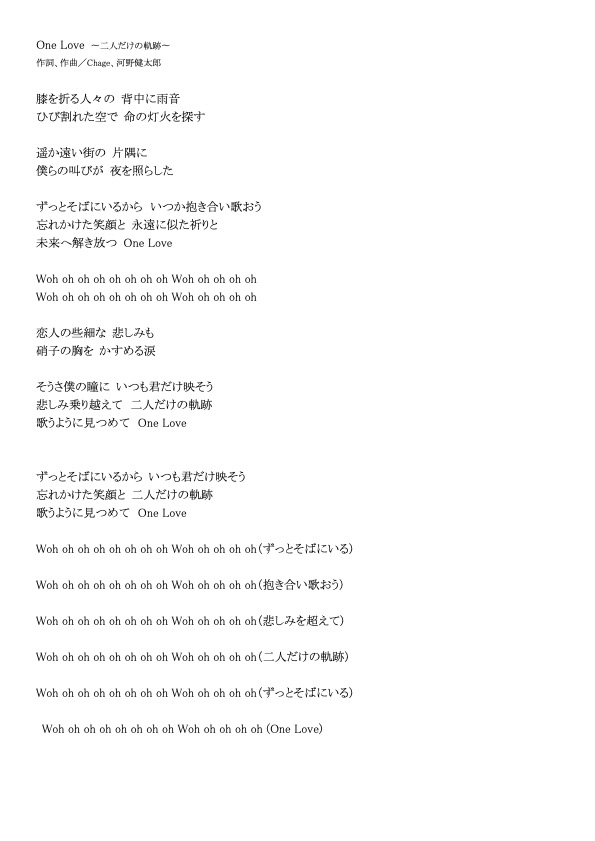 「One Love〜二人だけの奇跡〜 -Acoustic Ver.-」につきまして、